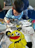 毎年参加しているにいはまたこあげ大会にでるために、たこをつくります。1 回目はたこの和紙に絵つけです。来年のえとの馬やおもち、ポケモン、太鼓台などみんなそれぞれ好きな絵を上手に描いていました。今年はゴンボイカのたこにしました。たこあげ大会の空に、みんなのたこが高く長くあがるといいね。来週は組み立てて完成させて、たこあげしてみるよ。