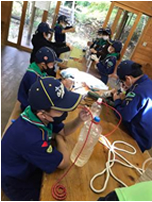 | キャンプに必要なロープ結びと進級課目のチェックを行いました。 |