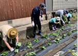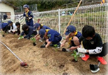 | よこい農園でサツマイモも「紅はるか」の苗をスカウトで植えました。最初に隊長から苗の植え方の説明を受け、いざ挑戦!スカウトたちは一生懸命、苗植えをしていました。泥だらけになった長靴がみんな頑張った証拠です! サツマイモ、秋の収穫が楽しみです。 |