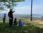 | 春の垣生山へハイキングへ行きました。ふもとにある登山口から歩きます。登りの傾斜はなかなかですが、さすがのビーバー隊!軽やかに登り進めます。山頂へ行くまでは市内を一望できる休憩所があり、みんなでひと休憩。思い思いに、この日の景色をスケッチして最後に発表しました。 |