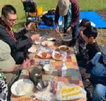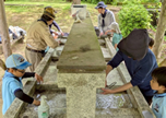 | 四国中央第二団と合同であまごつかみ体験をしました。あまごつかみ体験は、スカウトから大人まで楽しめる人気の活動内容の1つです。実際に魚を捕まえるスリルと、捕れたてのあまごを味わう喜びが体験できました。特に、塩焼きにして食べる獲れたてのあまごの美味しさは格別でした。 |