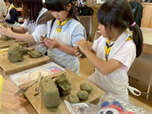 | 今治市菊間のかわら館で瓦粘土を使った陶芸体験をしました。施設の方々の指導の下、事前に準備したイメージ図やお手本作品を参考にしたり、型枠を使ったりしながら真剣に作品作りに取り組みました。スカウトも保護者も夢中で粘土と触れ合い、あっという間に2時間が経過。世界にひとつだけの立派な作品がたくさん出来ました。焼き上がりがとても楽しみです。 |