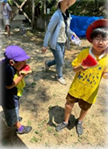 | ビーバー、カブ隊と合同で流しそうめんとスイカ割りをしました。普段家で食べるそうめんもおいしいですが、みんなと一緒に外で食べるそうめんは格別だったようで、スカウトは満腹になるまで本当によく食べました。スカウトも保護者も涼しさを満喫して楽しみました。 スイカ割りは小さい子から順番に皆で交代しながら挑戦。目隠しをした子に周りの子が「右!左!」と声をかけながら、ビーバー、カブ隊のみなさん楽しく交流を深めることができました。 |