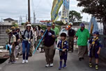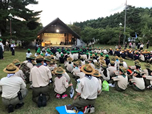 | 19NSJ プレ大会が神石高原町にて行われ、VS 隊より2 名のスカウトが参加した。中国・四国ブロックのスカウトが一堂に集い、大集会やハイキング・ローマ戦車等のプログラムを楽しんだ。愛媛県連盟派遣隊には、台湾嘉義市スカウトも合流し、大集会では野球拳踊りを披露、他県スカウトとの交歓会も盛り上がった。嘉義市スカウトの民族踊りの演舞はすばらしく、興味深い物であった。雨天の為日程を1 日残し愛媛に帰宅する。 |