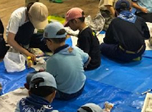| 四国中央市のスカウトと一緒に地区キャンポリーのゲームの準備をしました。四国中央市の指導者が目玉すくいを作成し、スカウトはペットボトルでボーリングのピンを作りました。自分たちの好きな絵を書いて、ペットボトルに貼って、水を入れたら完成!出来上がったあと、実際に遊び、改善案も考えました。本番で遊ぶのが楽しみですね。 |