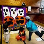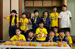 | ハロウィンや太鼓まつりも含めて世界のお祭りのことを楽しく学んだ後、ジャック・オー・ランタン作りをしました。かぼちゃに顔を描いて、ナイフで慎重にくり抜きます。ギザギザの歯や、三角の目・鼻など、細かい部分もがんばって、みんな違った顔のユニークなランタンが完成しました。家でろうそくを灯すと、ちょっと怖いけどきれいでした! |