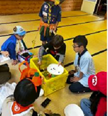 | 新居浜イオンモールで新居浜地区ボーイ、ベンチャー隊による全国防災キャラバンが実施されました。ビーバー隊も各自イベントへ参加しました。イベントでは、趣向を凝らした防災体験、防災知識の習得するためのブースが設置されていました。中でも、防災リュック体験は実際の重さを背負って感じ、想像以上にずっしりくる重さを体感することができました。また、被災を想定した段ボールハウス、トイレの体験では、実際に使い心地を知ることができました。いつ起きるかわからない「いざ」という時についてビーバー隊も真剣な面持ちで学ぶことができました。 |