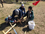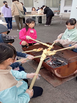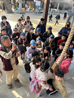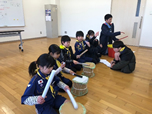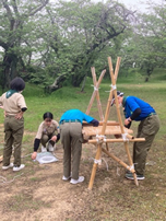 | カブラリープログラムで使用する、竹ぽっくりの紐通しのお手伝いと担架作りに挑戦しました。持ち手となる紐を『本結び』で結ぶ作業に挑戦。指導者に教わりながら、皆上手に結ぶことができました。完成した竹ぽっくりに乗り、大いに盛り上がる競争も行いました。 ➡ 詳しくはこちら。 |
