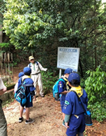 | 佐伯記念館に集合し、緑の募金について隊長から教わりました。緑の募金は植樹や間伐などの森林整備や地域緑化推進事業、子供たちへの森林環境教育、海外の緑化支援にも使われています。また募金活動を通して、「人と人」「人と森」「人と地域」をつなげる活動を推進しています。 ➡ 詳しくはこちら。 |