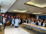 | コロナ渦以前は2年に一度行われていたこの行事、平成30年を最後に延期になっていましたが、6年振りにニューヨークから垂水バイオリン教室の皆さんが西条にいらっしゃいました。長旅の疲れも見せず、皆さん笑顔で歓迎レセプションに出席してくれました。明日は西条市庁舎や病院の訪問。8月26日まで滞在されます。 |