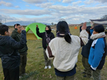 | 歌集を確認しながら歌の練習と、ロープワークの練習を行いました。しかし、歌声が全体的に小さく、今後の大きな課題として残りました。 翌朝は、各自で荷物の片付けを行いました。中には寝袋を上手くしまえないスカウトもいましたが、「自分でできるようになること」を目標に、指導者は具体的な助言を与えながら、基本的に見守る姿勢を貫きました。早く片付けを終えたスカウトが、遅れている仲間を手伝う姿も見られ、協力し合う様子がうかがえました。今回の経験を踏まえ、寝袋の撤収に不安が残るスカウトは、本番での活動をスムーズにするためにも、家庭で練習必須です。写真は翌朝のお掃除をしているところです。 |