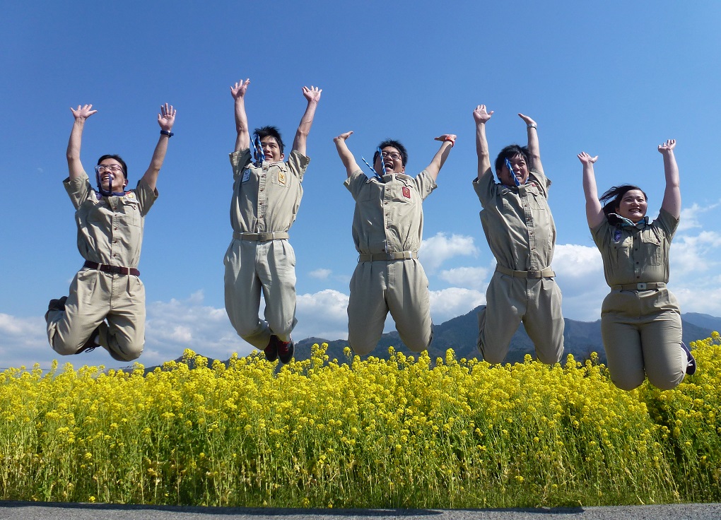 会議では、ボーイスカウトの楽しい活動を伝えるための方策と、平成27年度ローバース会議で実施する事業について熱心に意見を出し合いました。 途中、近くの菜の花畑へ出かけ元気いっぱいの写真撮影を行いました。下記の写真はその時に撮影したものです。