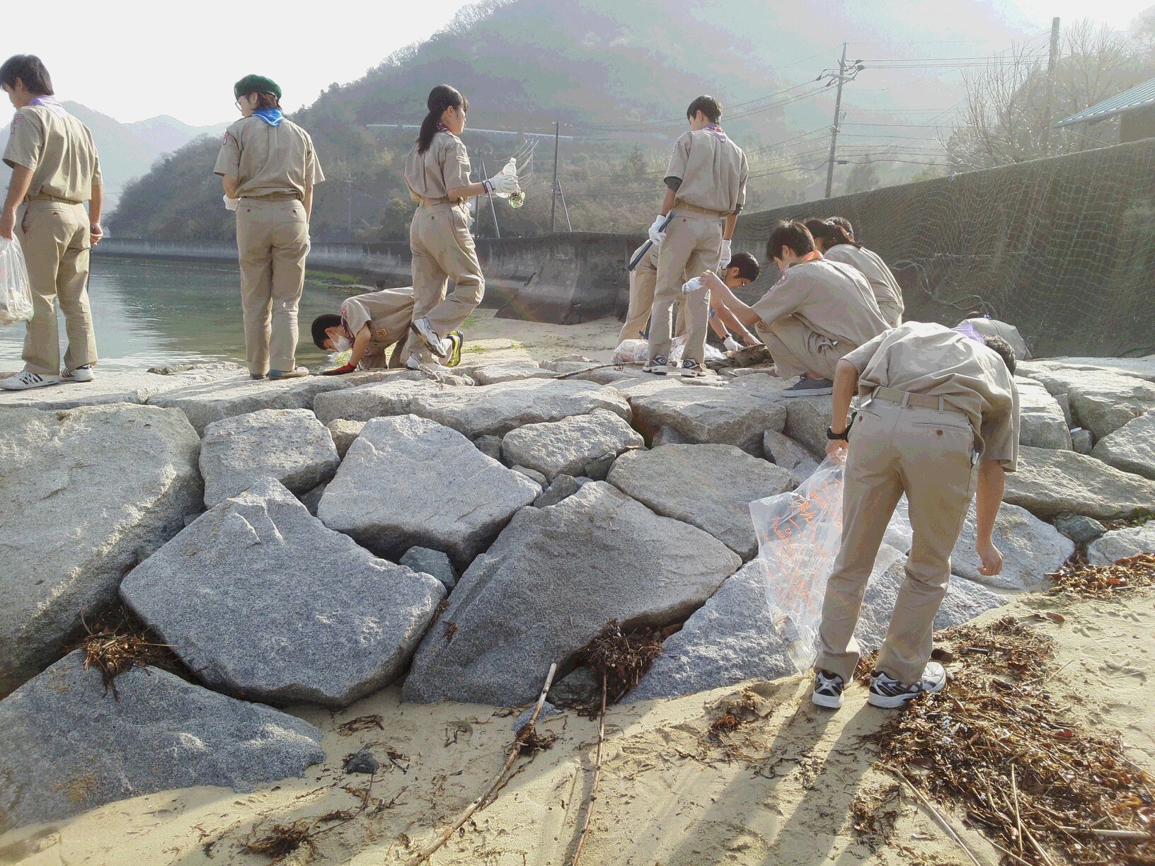 議長が全国スカウトフォーラムで採択され、持ち帰ってきた「エンジョイ クリーン作戦」も自然の家近くの海岸で実施しました。