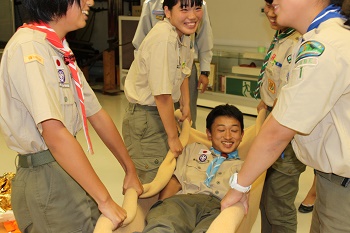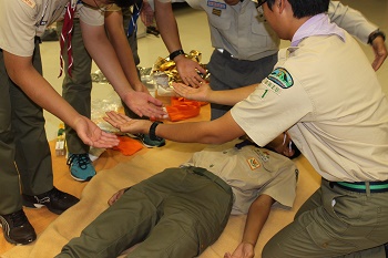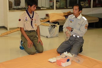 2017年9月16日、18日2日にわたり合計8時間受講し、講習後テストで成績優秀で全員合格いたしました。松前消防署主任講師はじめ救急救命士の皆様ありがとうございました。懇切丁寧にご指導いただき感謝いたします。今後も社会に役立つスカウトとしてスキルを活かし尽くしたいと思います。