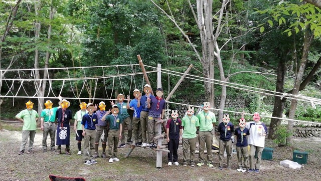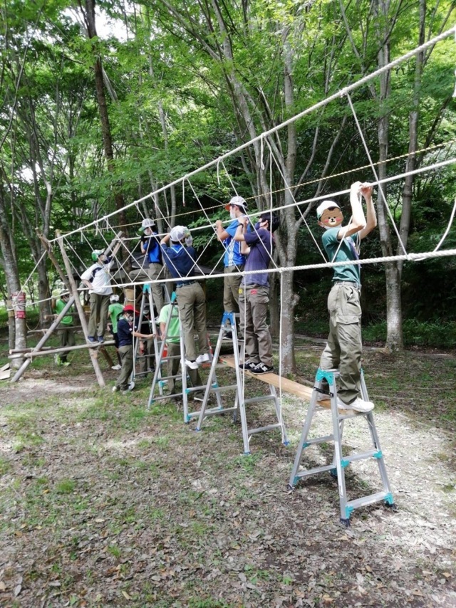 令和3年7月22日(木・海の日)に、内子町知清公園でBS&VSスカウト12名がパイオニアリング「モンキーブリッジ」の製作に取り組みました。