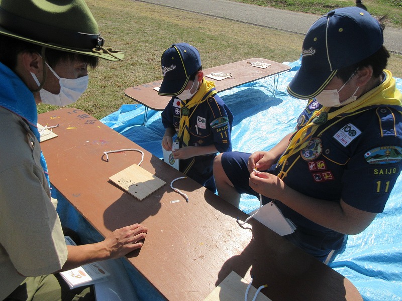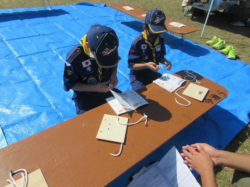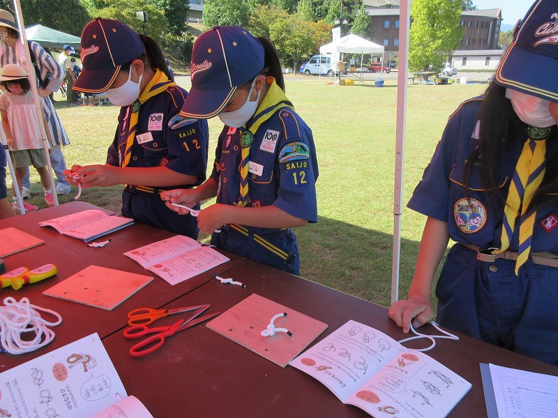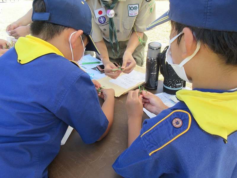 シトラスリボンを作るところでは、ボーイ隊のお姉さんがわかりやすく教えてくれ、スカウトは出来上がりに満足の様子でした。