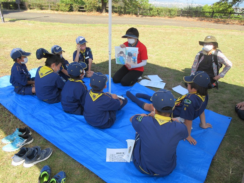 コロナ禍の中、集会もなかなか難しい状況、久しぶりに組のみんなで一緒に各ポイントをまわり楽しんでいました。カブスカウトのモットー「いつも元気!」でした。